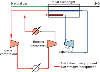 Expanded to provide refrigeration. Nitrogen Expansion: The HHP nitrogen stream is split into three parts to provide refrigeration at three temperatures in two different pressure levels. First, a portion of the HHP nitrogen stream is expanded to medium pressure inthe ... Document Retrieval